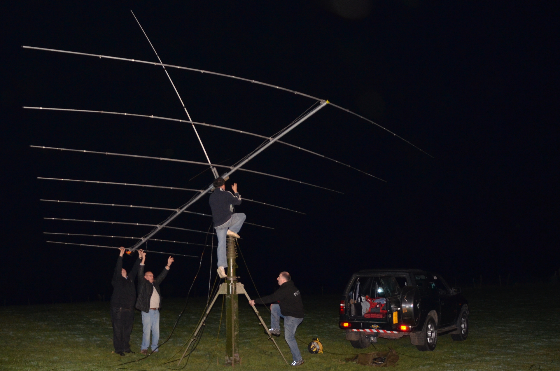 Members help guide the Cushcraft ASL 2010 up on the SCAM12, with Diamond F-23 colinear atop.