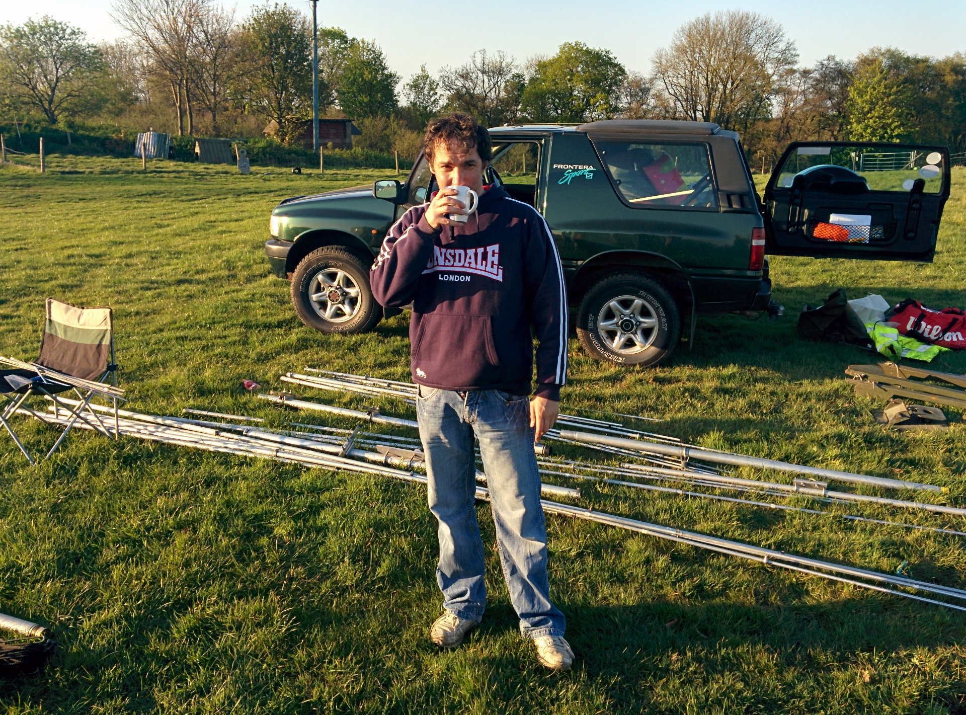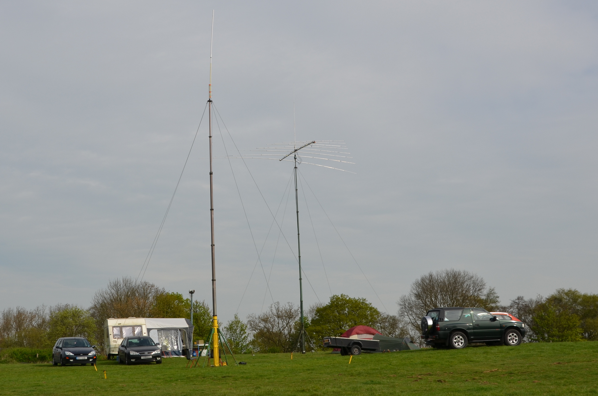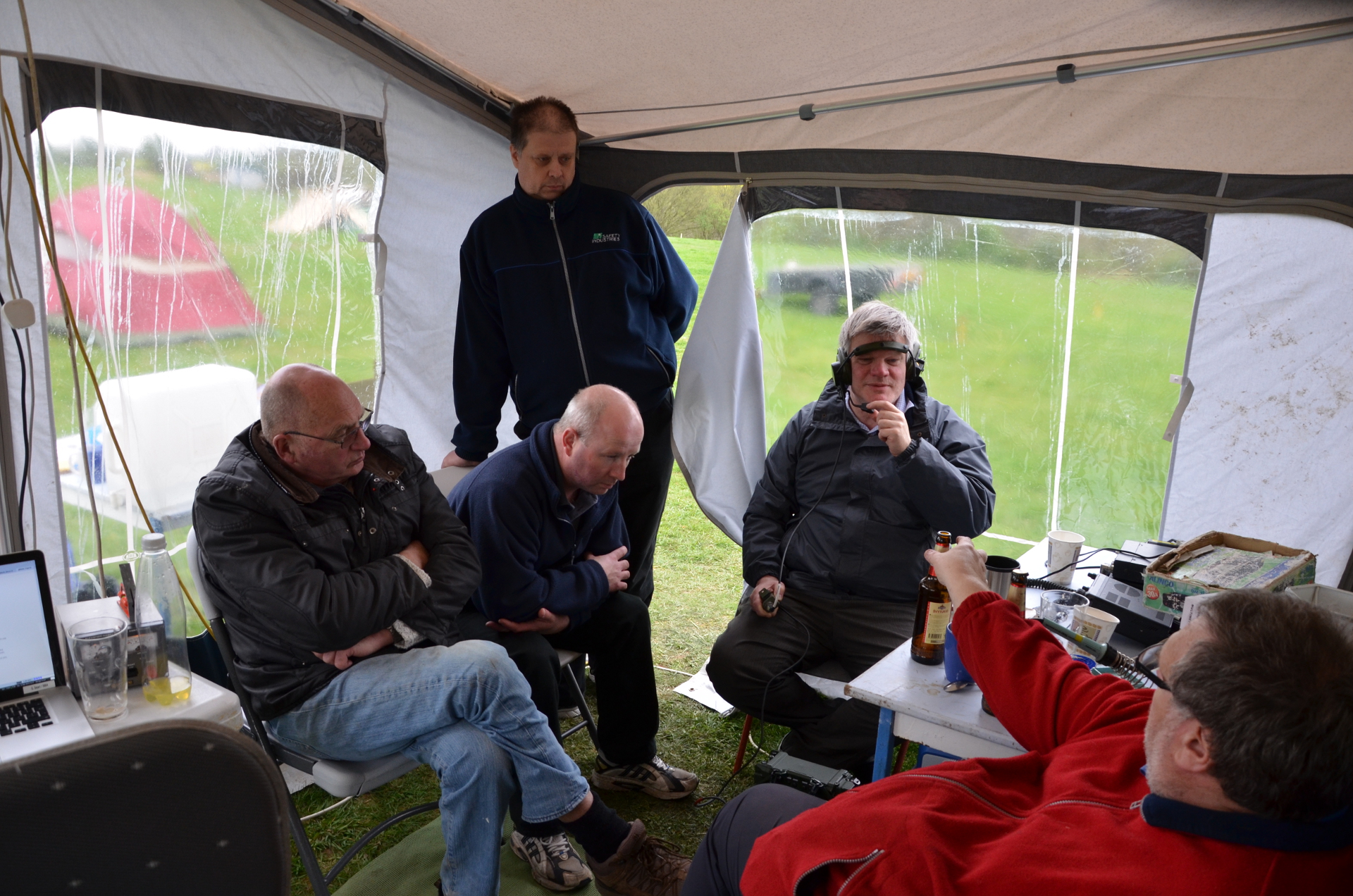 At about 5pm, Spencer M0STO and Peter G0IAP converged on the grass outside the main mast at GB0SNB. In their usual style, George M1GEO and Chris G8OCV were late delayed by around 1 hour by collecting their caravan. Kevin M0TBX and others arrived some time later since they were coming from work.