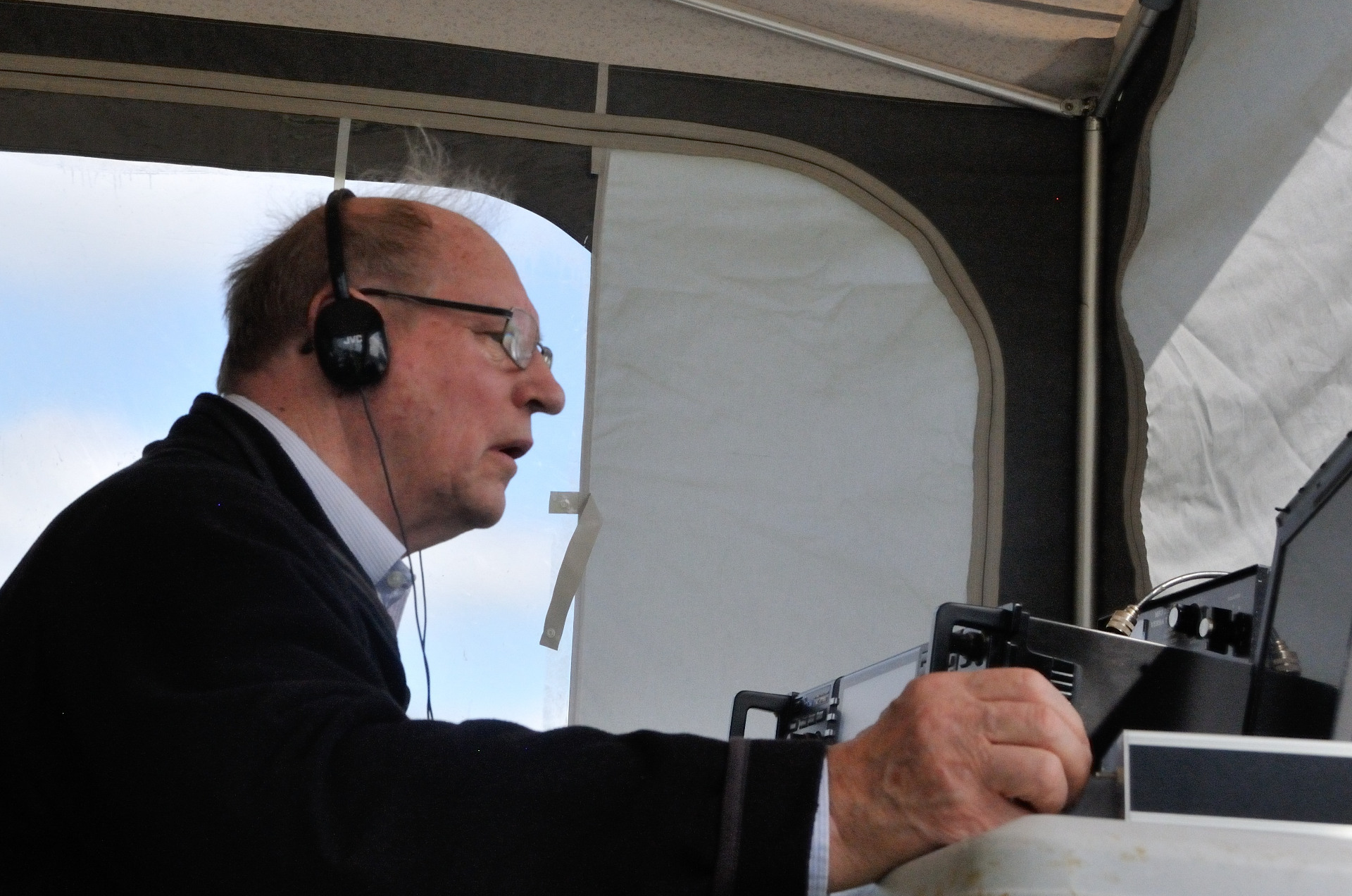 Below, Fred G3SVK operates the key on 17 metres, beaming towards Japan.