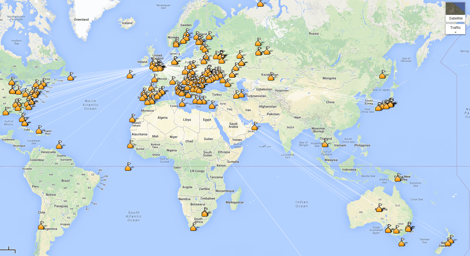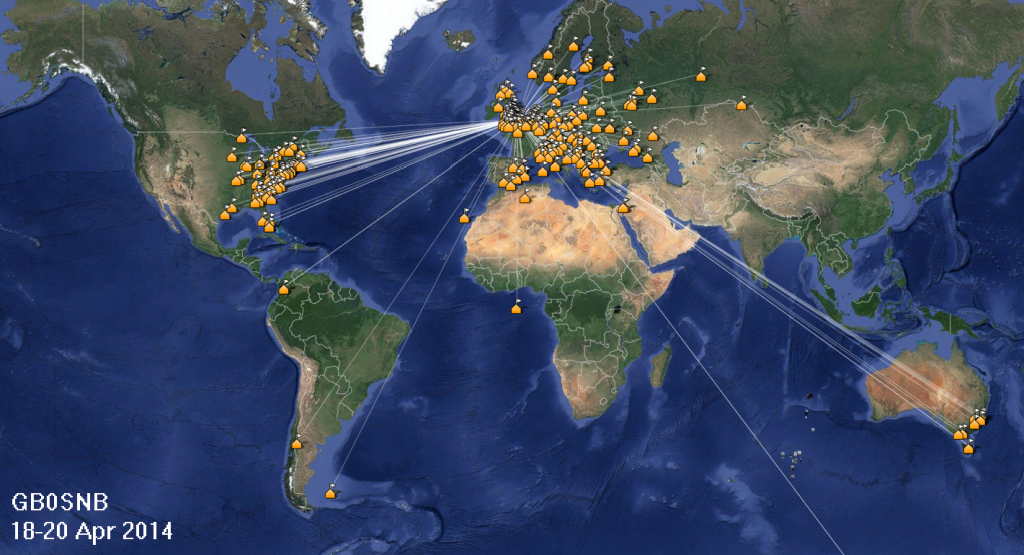 In total, there were 280 QSOs made that weekend, covering all areas of the globe. The map below shows some of the contacts made. Locations were taken from QRZ,com and so not all worked stations are on the map.