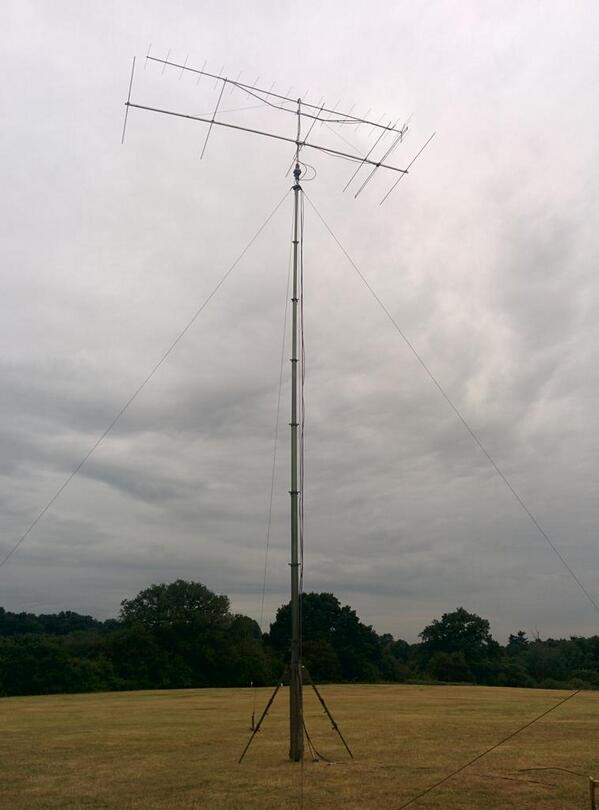 Two masts were used.  Pictured below are the 6 metre and 2 metre antennas on the SCAM 12 metre mast.