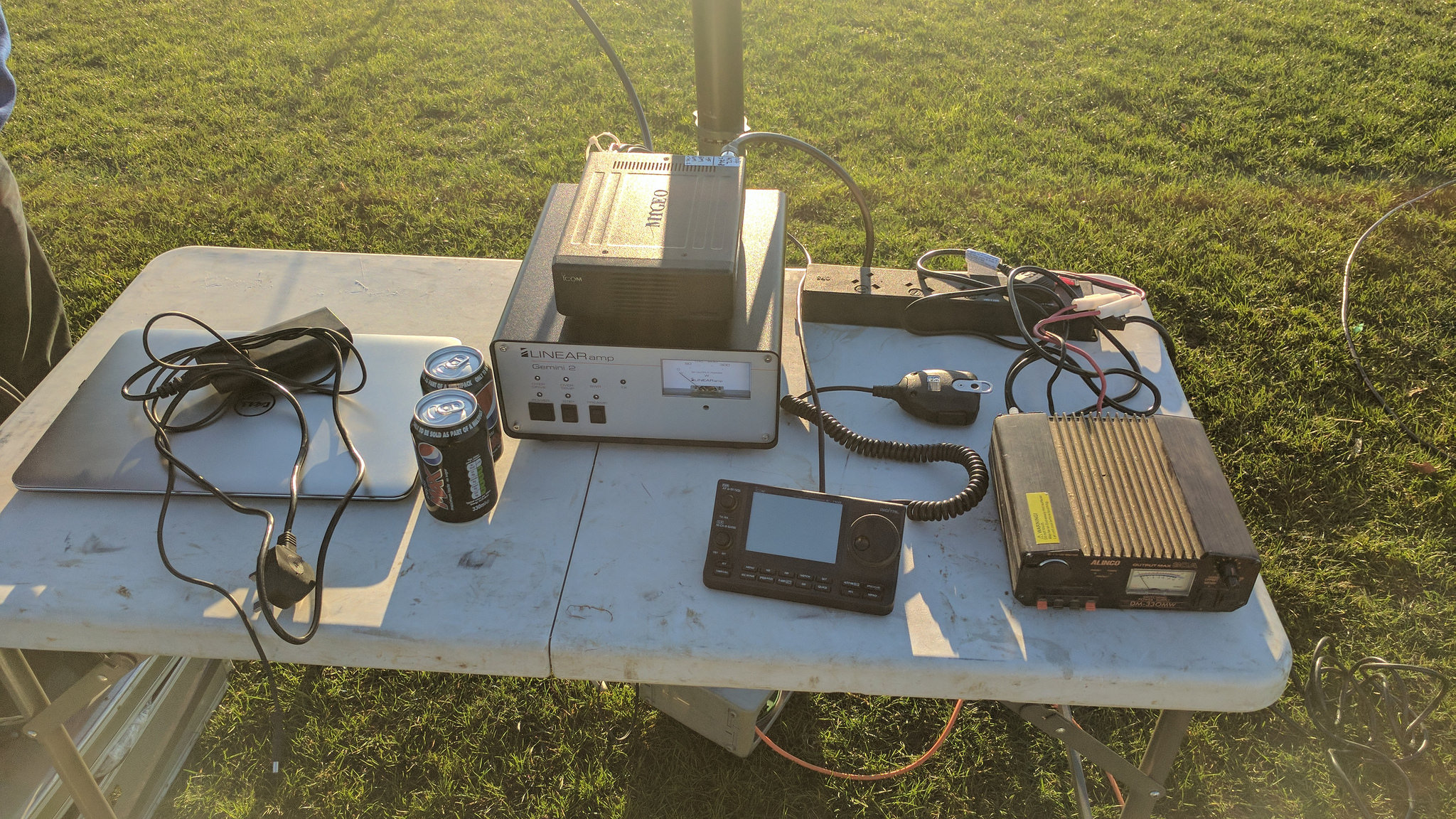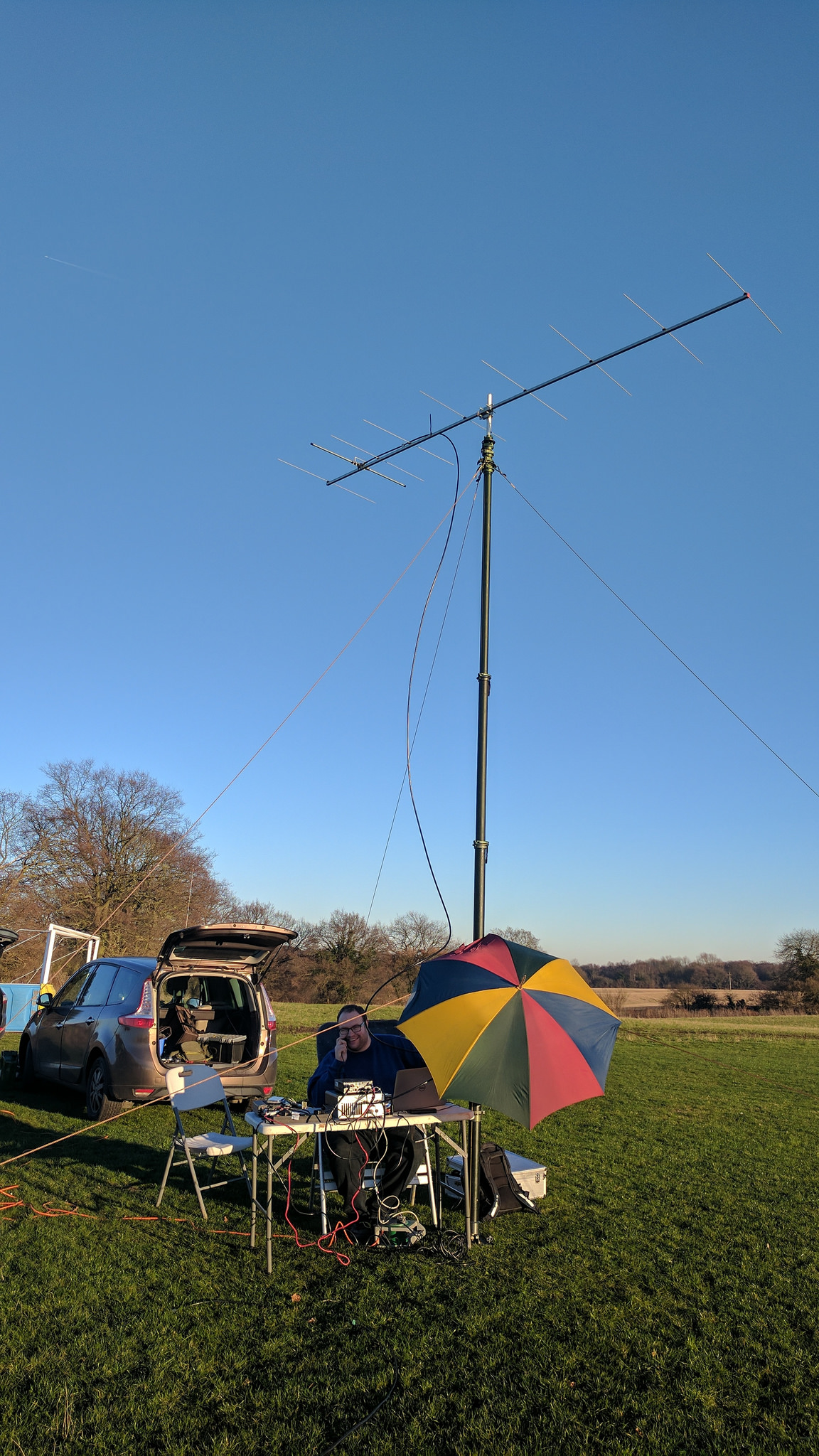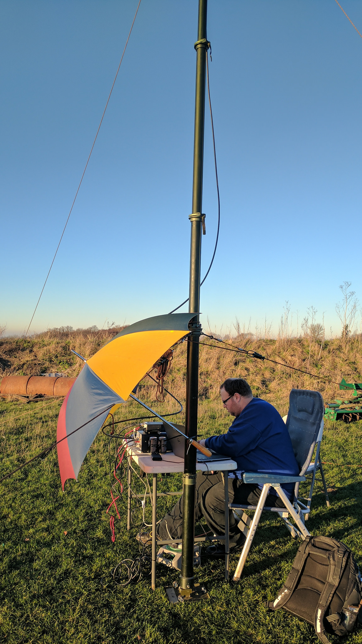 The temperature dropped quickly once the sun set, providing a spectacular sunset and the motivation to pack away quickly. Altogether a great afternoon playing radio, with some great propagation for a change.